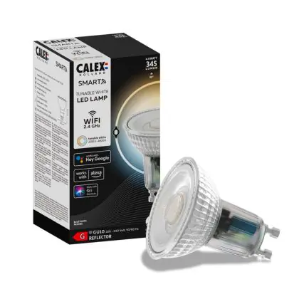 Je kunt er ook voor kiezen om meerdere Calex smart lampen te koppelen aan onder andere een Google Home of Amazon Alexa apparaat. Dit maakt het mogelijk om Calex verlichting via jouw eigen stemgeluid te bedienen. Door het geven van simpele instructies als; ‘Hey Google, dim de lamp eettafel’, heb je dit al snel geregeld! Tevens is deze GU10 Calex Smart verlichting te bedienen via een officiële Calex Smart afstandsbediening. Verder werkt deze Calex lamp op een wandschakelaar, maar niet op een dimmerschakelaar. Ben je op zoek naar Smart verlichting met bijvoorbeeld een andere fitting of in een andere vorm? Klik dan hier om ons volledige assortiment te bekijken!