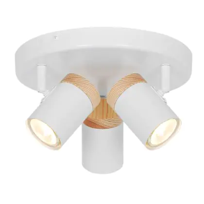 Beschrijving D'Lite Plafondlamp Beitem Metaal Mat Wit FSC Hout | Geschikt Voor 3x GU10