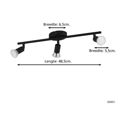 Beschrijving Eglo Plafondlamp Buzz-LED Staal Zwart 3x2.8W 3x250lm - 830 Warm Wit | IP20 - Incl. 3x GU10