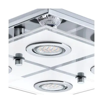 Beschrijving Eglo Plafondlamp Cabo Roestvrij Staal Chroom 4x2.8W 4x250lm - 830 Warm Wit | IP20 - Incl. 4x GU10