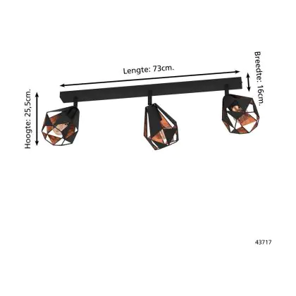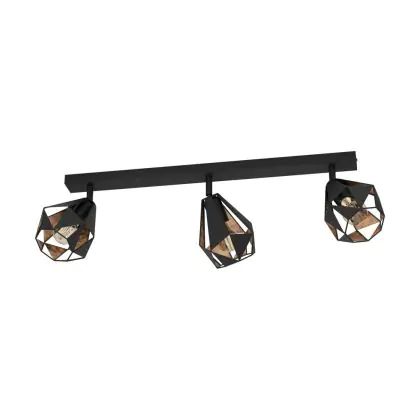 Beschrijving Eglo Plafondlamp Carlton 7 Staal Zwart Koper | IP20 - Geschikt voor 3x E27