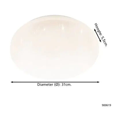 Beschrijving Eglo Wand en Plafondlamp Frania-S Staal Wit 15W 1800lm - 830 Warm Wit | IP44