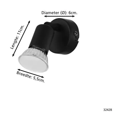 Beschrijving Eglo Wandlamp Buzz-LED Staal Zwart 2.8W 250lm - 830 Warm Wit | IP20 - Incl. 1x GU10