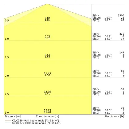 ![]() De kleurcode is een combinatie van de kleurweergave (CRI) en lichtkleur (Kelvin). Het eerste getal is de kleurweergave (1 = zeer slechte kleurweergave, 9 = maximale kleurechtheid). Het tweede en derde cijfer betreft de lichtkleur. Een lamp met kleurcode 830 heeft bijvoorbeeld een goede kleurweergave en straalt een warm wit licht uit (3000K), waar een lamp met de kleurcode 940 een uitstekende CRI heeft en een koel wit licht (4000K) uitstraalt. |