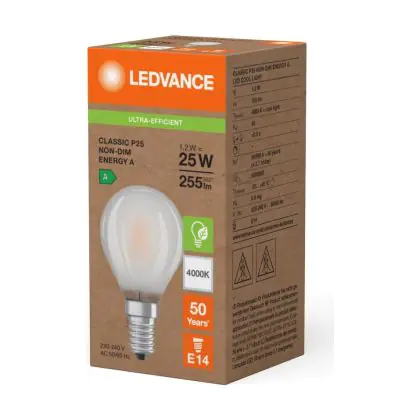 Ledvance LED Classic E14 Peer Filament Mat 1.2W 255lm - 840 Koel Wit | Vervangt 25W