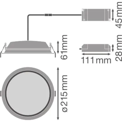 Beschrijving Ledvance LED Downlight Alu DN200 35W 3150lm 100D - 865 Daglicht | 215mm - IP44 - Dali Dimbaar