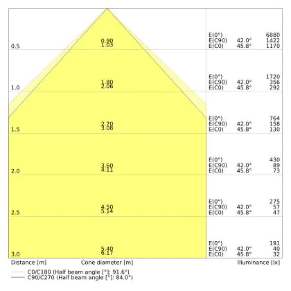 ![]() De kleurcode is een combinatie van de kleurweergave (CRI) en lichtkleur (Kelvin). Het eerste getal is de kleurweergave (1 = zeer slechte kleurweergave, 9 = maximale kleurechtheid). Het tweede en derde cijfer betreft de lichtkleur. Een lamp met kleurcode 830 heeft bijvoorbeeld een goede kleurweergave en straalt een warm wit licht uit (3000K), waar een lamp met de kleurcode 940 een uitstekende CRI heeft en een koel wit licht (4000K) uitstraalt. |
