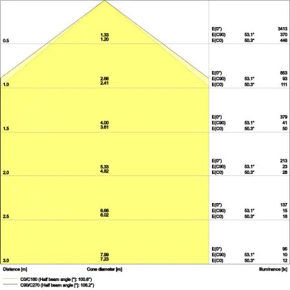 De lichtopbrengst (Lumen), geeft weer hoe krachtig het uitgestraalde licht is. Dit is belangrijk om te weten om de juiste sfeer te creëren. 0 tot 400 Lumen is bij uitstek geschikt voor accent- of sfeerverlichting. Een hoger aantal Lumen is, afhankelijk van de grootte van de ruimte, beter geschikt als ondersteunende- of basisverlichting. Heb je plafonds hoger dan 4 meter, dan is een lichtopbrengst van minimaal 8000lm aan te raden indien heldere verliching gewenst is (vb. in werkomgevingen).