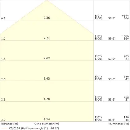 ![]() De kleurcode is een combinatie van de kleurweergave (CRI) en lichtkleur (Kelvin). Het eerste getal is de kleurweergave (1 = zeer slechte kleurweergave, 9 = maximale kleurechtheid). Het tweede en derde cijfer betreft de lichtkleur. Een lamp met kleurcode 830 heeft bijvoorbeeld een goede kleurweergave en straalt een warm wit licht uit (3000K), waar een lamp met de kleurcode 940 een uitstekende CRI heeft en een koel wit licht (4000K) uitstraalt. |