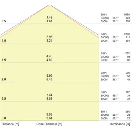De lichtopbrengst (Lumen), geeft weer hoe krachtig het uitgestraalde licht is. Dit is belangrijk om te weten om de juiste sfeer te creëren. 0 tot 400 Lumen is bij uitstek geschikt voor accent- of sfeerverlichting. Een hoger aantal Lumen is, afhankelijk van de grootte van de ruimte, beter geschikt als ondersteunende- of basisverlichting. Heb je plafonds hoger dan 4 meter, dan is een lichtopbrengst van minimaal 8000lm aan te raden indien heldere verliching gewenst is (vb. in werkomgevingen).