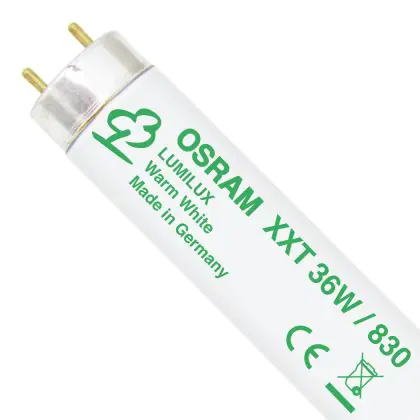 Bovendien heeft de buis een zeer goede kleurweergave van 80-90Ra. Met een levensduur van 80000 branduren gaat de lichtbron erg lang mee en is vervanging minder vaak nodig. Bovendien heeft de OSRAM T8 L 36W/830 XXT G13 Warm White energielabel A, en is daardoor milieuvriendelijk.