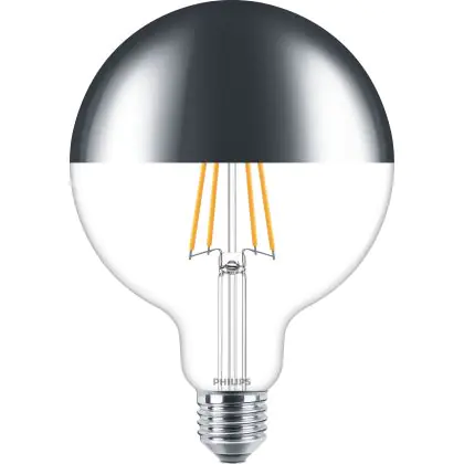Beschrijving Philips Classic LED Globe E27 Filament Spiegel Helder 120mm 7.2W 650lm - 827 Zeer Warm Wit | Dimbaar - Vervangt 60W
