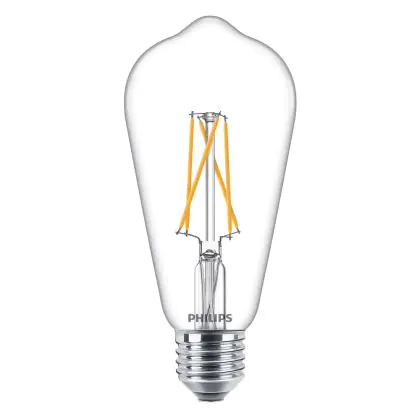 Naast de kleurtemperatuur speelt het uiterlijk van de lamp een belangrijke rol. Ga je voor mat glas of liever helder/gekleurd glas, waardoor je het LED filament (de oranje kooldraad) goed kunt zien? Heb je ook al nagedacht over de vorm en grootte? Deze E27 lamp heeft als vorm: Edison. Ten slotte heb je bij ons een zeer ruime keus aan dimbare E27 LED lampen. Hierbij heb je een LED dimmer nodig. Wil je extra informatie over E27 LED? Lees dan onze blog: Hoe vind ik de juiste E27 lamp?