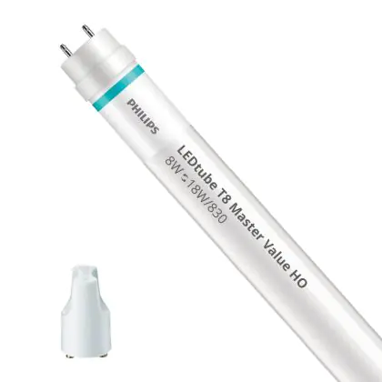Beschrijving Philips LED Buis T8 MASTER Value (EM/Mains) High Output 8W 1000lm - 830 Warm Wit | 60cm - Vervangt 18W